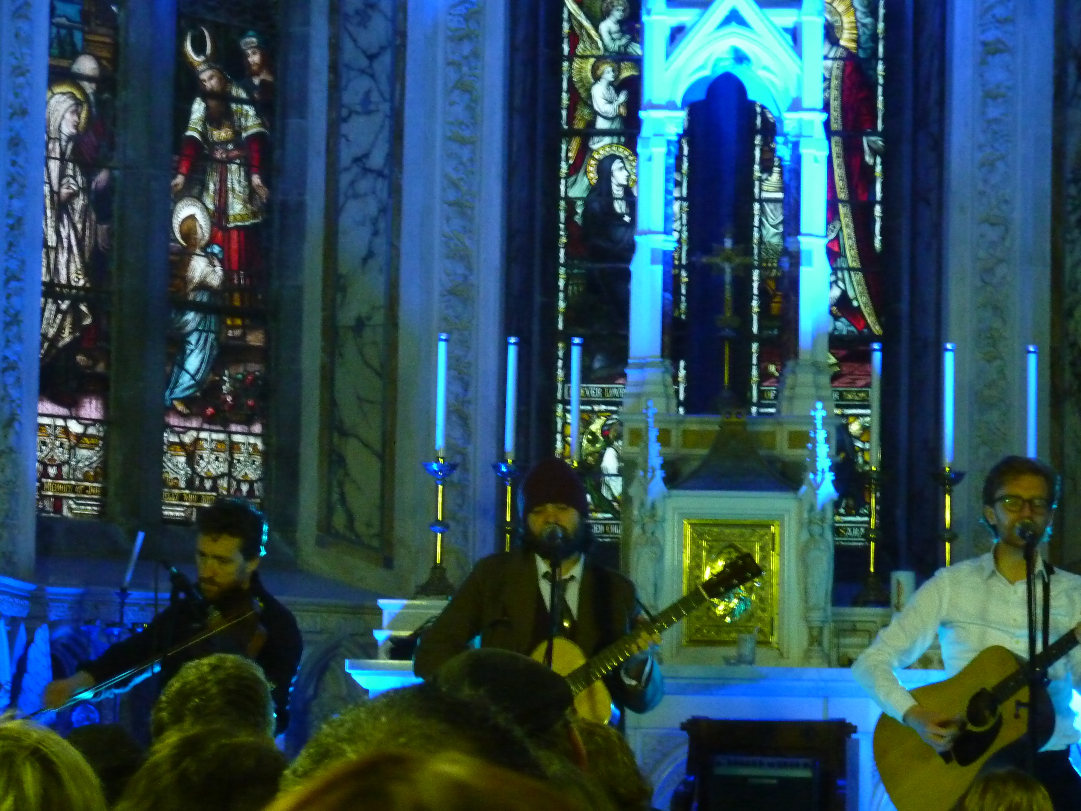 On file vite à An Díseart, (une église, un presbytère?), où The Lost Brothers vont se produire. Entourés des magnifiques vitraux de Harry Clarke (ceux du Bewley’s Café à Dublin, c’est lui !), on assiste aux répétitions des très bons August Wells puis arrivent les deux « frères perdus » qui défendent leur quatrième album intitulé New Songs Of Dawn and Dust. Preuve de leur « starification », ils avaient eu droit la veille de se produire à la Saint James Church. Colm Mac Con Iomaire les accompagnait, et revient les soutenir notamment sur Poor Man et Soldier’s song. Leur folk / americana assez classique (on pense au Everly Brothers) agit sur le public irlandais mais un peu moins sur la française de passage. Trop sage et surtout déjà entendu…
